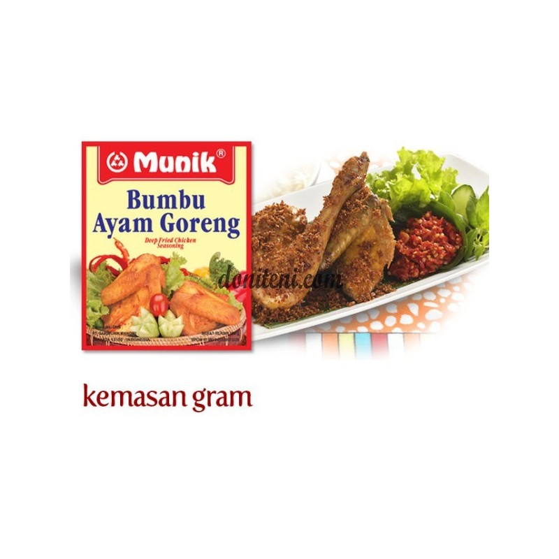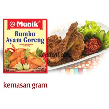 Bumbu Munik Ayam Goreng sangat praktis karena bumbu sudah matang (tidak perlu ditumis lagi) dan tidak perlu ditambahkan garam atau lainnya. Petunjuk lengkap tersedia di kemasan dan sangat cocok untuk pemula atau para ahli dapur. Efisien, hemat biaya dan lezat, dapatkan sensasi restoran bintang lima di setiap Bumbu Munik Ayam Goreng. Berat 180gram,