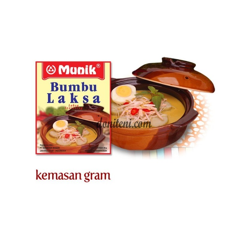 Rasa gurih bercampur asem manis yang paling mantap ada di bumbu Munik Laksa. Diracik khusus untuk citarasa lidah Indonesia, nikmati kayanya sensasi rasa sesungguhnya laksa terbaik bersama bumbu laksa Sari Munik. Jangan sampai hasil masakan terasa kurang pas di lidah, apalagi untuk menu yang membutuhkan paduan bahan dan rempah yang kompleks. Dengan Bumbu Munik Laksa, Anda tinggal menambahkan tanpa harus memasak atau menumis ulang. Bahkan, rasanya juga sudah pas dan tidak perlu ditambahkan garam atau bumbu dapur lainnya. Praktis, higienis, dan halal, bumbu Munik teman terbaik ibu di dapur.