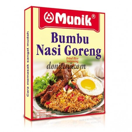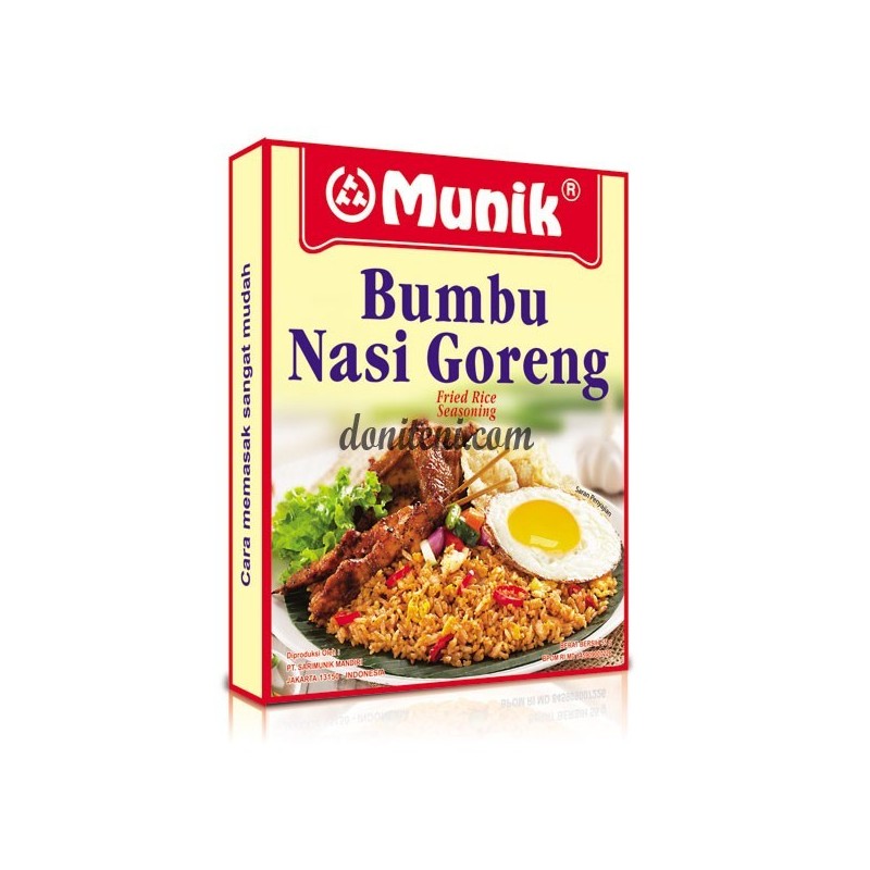 Resep nasi goreng anti gagal berawal dari Bumbu Munik Nasi Goreng. Diracik dengan bumbu dapur asli pilihan, bumbu nasi goreng terbaik dari Sari Munik memberikan hasil nasi yang sedap wangi, gurih lezat di lidah dan bikin ingin nambah! Jangan mau dengan bumbu nasi goreng biasa, pilih Bumbu Munik Nasi Goreng juaranya Bukan sembarang bumbu nasi goreng, Bumbu Munik Nasi Goreng diracik khas dengan aroma lezat dari bahan- bahan berkualitas. Cukup gunakan sesuai petunjuk yang terdapat di kemasan, Bumbu Munik Nasi Goreng tidak perlu ditambahkan dengan perasa lainnya dan hanya butuh waktu sebentar untuk dimasak. Cocok untuk pemula, bahkan ibu ahli yang ingin citarasa ala restoran yang menggugah selera.