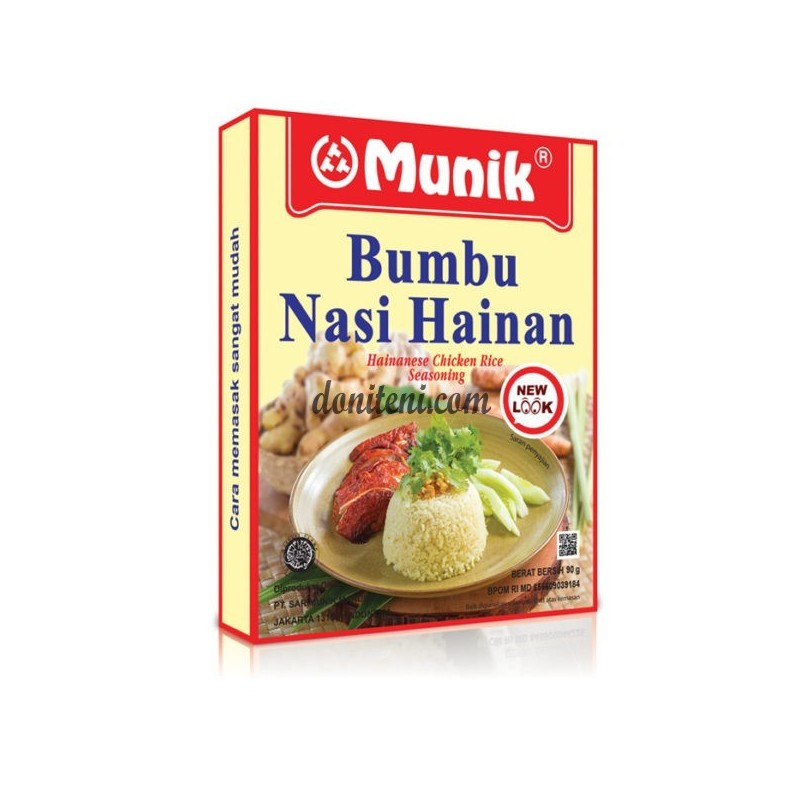 Dengan perpaduan cita rasa Asia yang tepat, Bumbu Munik Ayam Hainan diracik khusus untuk pecinta kuliner Indonesia. Ada rasa jahe dan kunyit yang menjadikan setiap suapan nasi bumbu ayam Hainan ini begitu menggugah selera. Praktis dan higienis, yuk sedia dulu Bumbu Muniknya. Tahan lama, higienis dan halal, Bumbu Munik Ayam Hainan sangat mudah digunakan. Cukup ditambahkan sesuai dengan petunjuk pada kemasan, Anda tidak perlu lagi memasak ulang atau menambahkan bumbu lainnya karena setiap bungkus Bumbu Munik sudah ideal rasanya. Cocok untuk Anda yang sibuk dan ingin solusi praktis, Bumbu Munik pas di lidah, pas di hati. Berat bersih 90gr, berat kotor 110 gr.