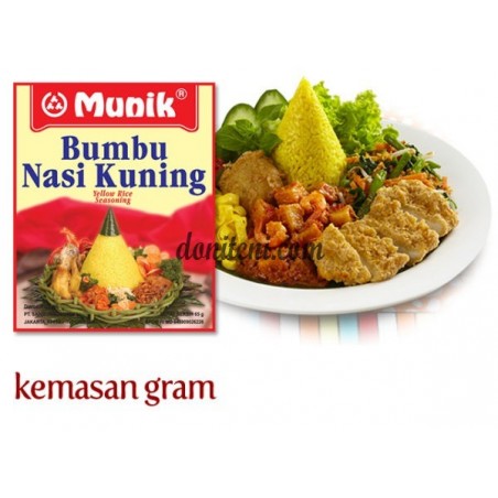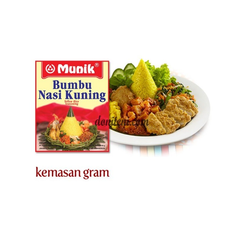 Penuh aroma, gurih sedap dan kuning keemasan sempurna, Bumbu Munik Nasi Kuning siap melengkapi acara spesial Anda! Dengan rasa super gurih, bumbu nasi kuning dari Sari Munik sangat mudah, praktis dan nikmat berselera. Tidak perlu sibuk mencocokkan bumbu dasar pembuatan Nasi Kuning lagi karena Bumbu Munik Nasi Kuning sudah diracik jadi dan tinggal ditambahkan saja. Tidak perlu ditumis ataupun ditambahkan dengan bumbu penyedap lainnya, Bumbu Munik tetap bisa menghadirkan aroma, rasa dan penampilan Nasi Kuning layaknya kreasi restoran bintang lima secara praktis.