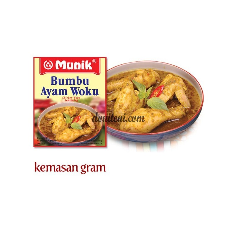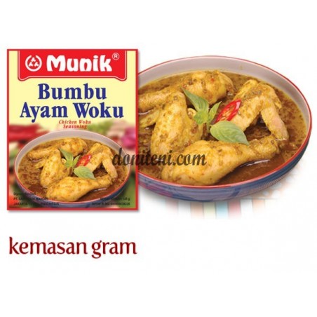 Tidak perlu jauh- jauh ke Manado untuk seporsi ayam Woku asli. Satu kemasan Bumbu Munik Ayam Woku sudah dilengkapi dengan semua bumbu dan rempah pilihan khas bumi Sulawesi Utara untuk hasil terbaiknya. Mau Ayam Woku nikmat? Di Bumbu Munik Ayam Woku pastinya! Bumbu Munik Ayam Woku sangat praktis karena bumbu sudah matang alias tidak perlu ditumis lagi. Rasanya juga sudah pas, sehingga tidak butuh menambah garam, gula atau bumbu lainnya. Tersedia dalam kemasan yang higienis, praktis dan halal, Bumbu Munik menjadi solusi persiapan memasak untuk Anda yang ingin hasil masakan yang dapat diandalkan. Berat bersih 130 gram
