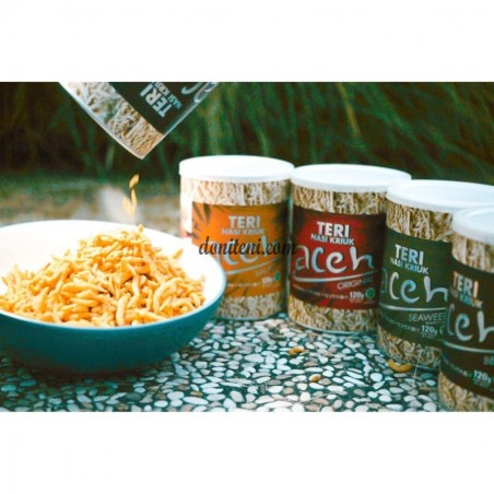 Aceh Teri Nasi Kriuk Teri Medan ada 4 varian Rasa Original, BBQ, Balado, Sweet