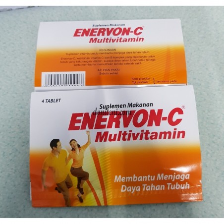 Isi 4 kaplet Enervon C Strip penjaga daya tahan tubuh Manfaat Vitamin C u/ kulit: 1. Mencegah Keriput (pembentukan kolagen) 2. Mencegah Kulit Kering (melindungi pemb darah yg membawa oksigen & nutrisi di kulit) 3. Mempercepat Penyembuhan Luka (mengurangi respon inflamasi di daerah luka) 4. Fotoproteksi (mencegah kerusakan akibat sinar uv) Komposisi: Vit C, niacinamide, Ca panthothenate, Vit B1, Vit B2, Vit B6, Vit B12 Indikasi: Suplemen untuk membantu menjaga daya tahan tubuh