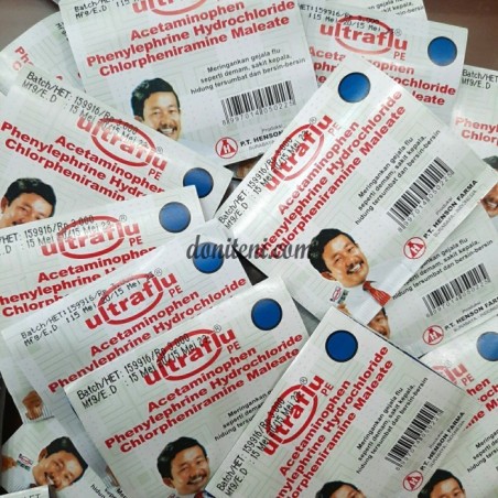 Obat Flu ULTRAFLU ULTRAFLU tablet adalah obat yang digunakan untuk mengobati gejala flu seperti demam, sakit kepala, hidung tersumbat dan bersin-bersin. Harga per 1 strip @ 4 tab