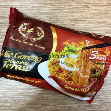 Mie Goreng Sambal Terasi Ekstra Pedas Cap Burung Layang Terbang hadir sebagai produk baru yang unik dan dengan kelezatan yang mantap ! Mudah dan cepat dimasak seperti mie instan lainnya, dan rasanya dijamin nikmat.