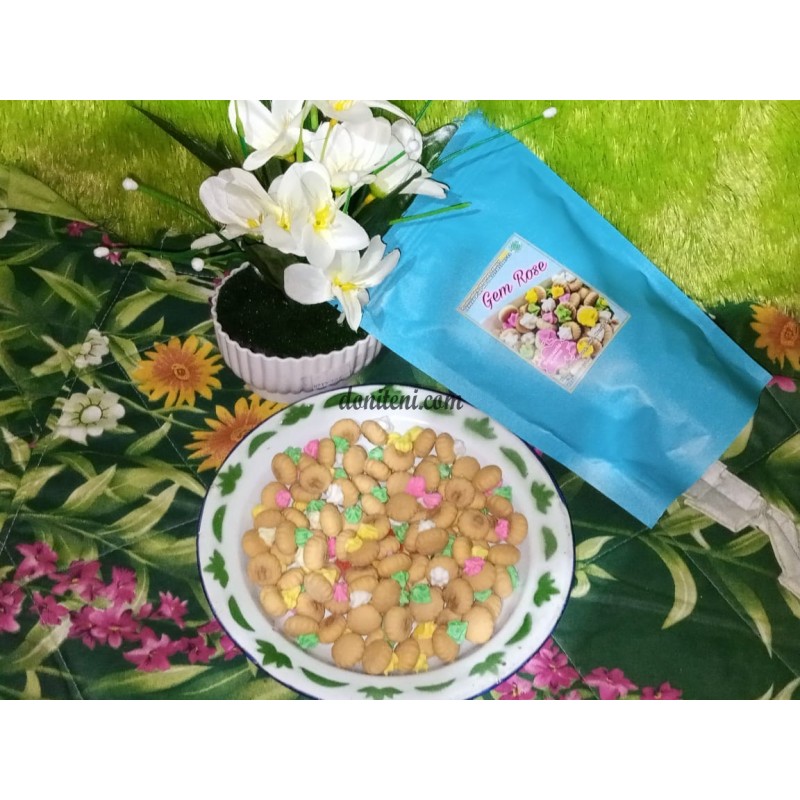 Gemrose adalah biskuit Jadul berbentul bulat dengan topping gula berbentuk kembang yang berwarna-warni.
